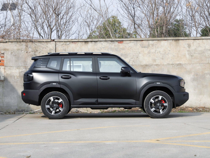 自由者这边在现款方盒子造型的基础上,同时拥有长方形熏进气格栅+表面“JETOUR”英文LOGO、四叶草造型前大灯组。同样整车都是“黑化”外观风格,配备黑色车顶行李架、黑色轮眉和黑色车窗装饰条。